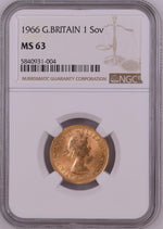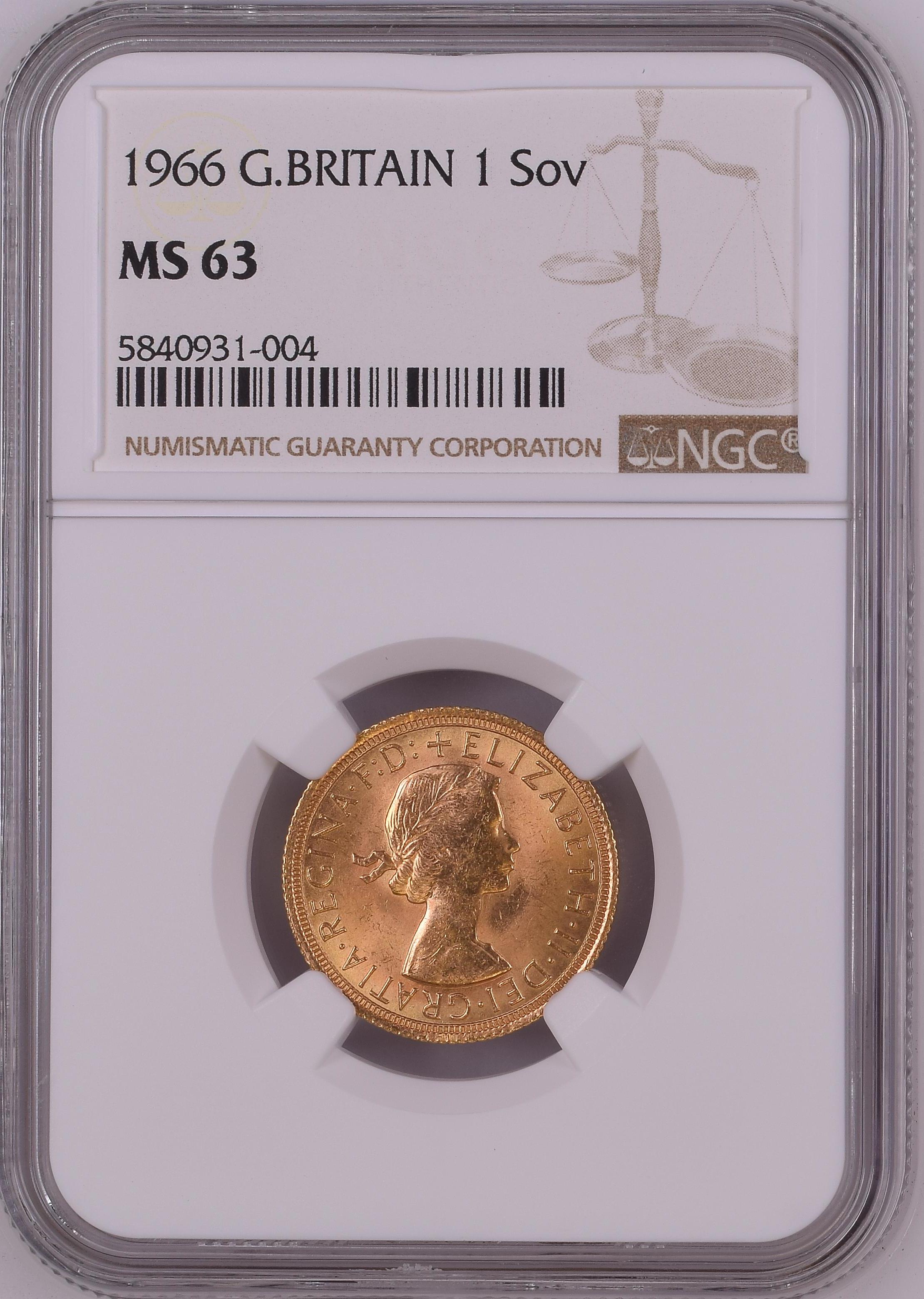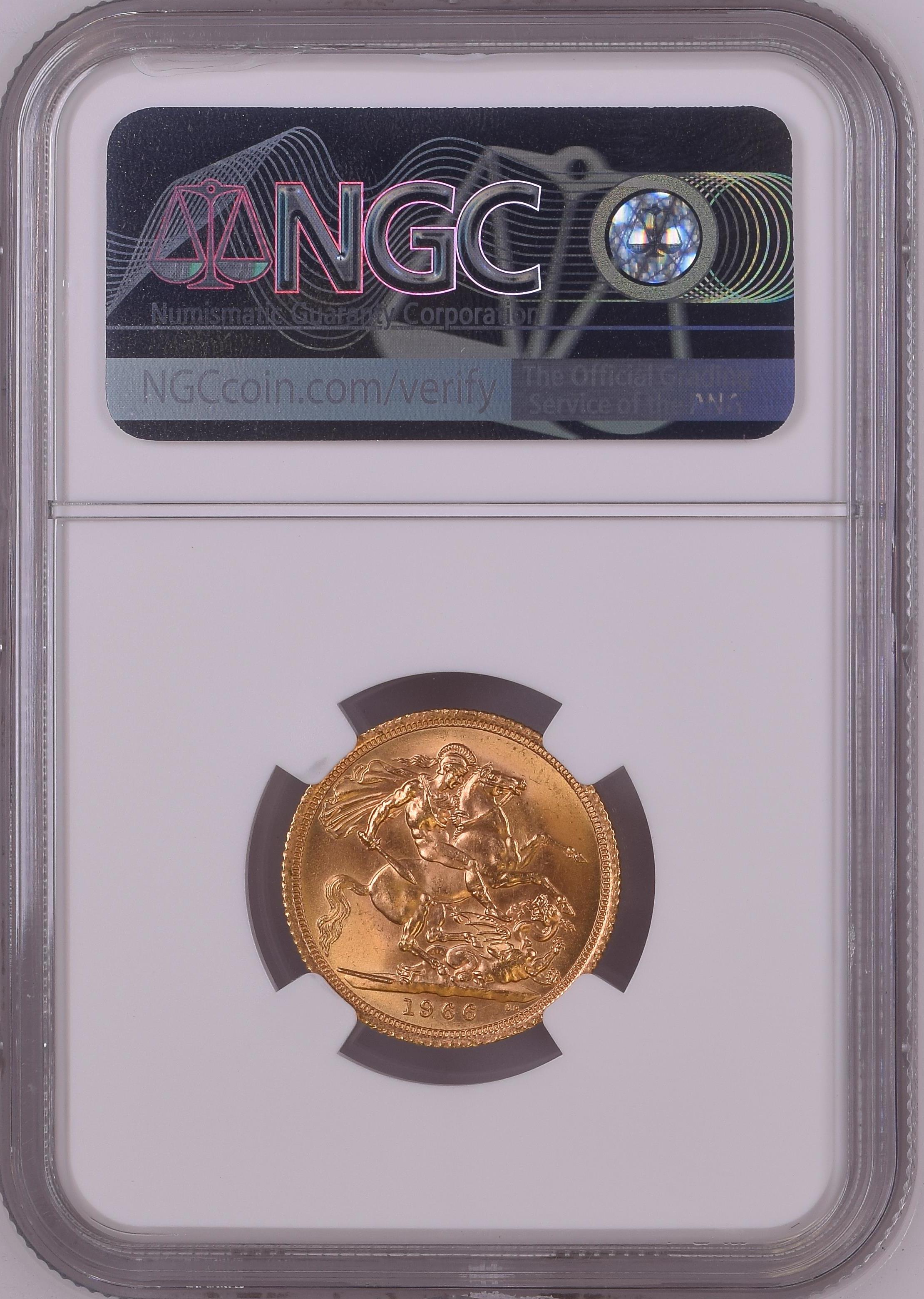 Elizabeth II, Sovereign, 1966, London (S.4125), in NGC holder, graded NGC MS63 (Cert. #5840931-004)