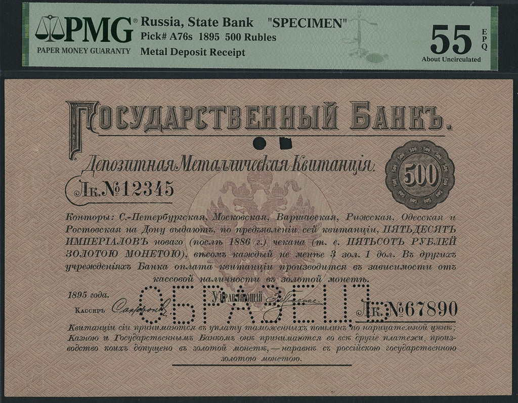State Bank, Russia *TOP POP* Specimen 500 Rubles, 1895, serial number range 1234567890, Pick A76s