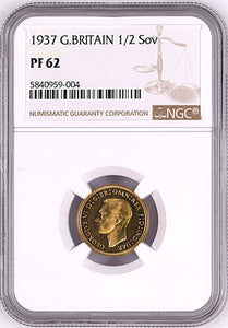 George VI Coronation Proof Half-Sovereign, 1937, London (W&R 442; S.4077), light handing marks in otherwise brilliant fields, with a hint of cameo definition, one of only 5,001 struck, in NGC holder, graded NGC PF62 (Cert. #5840959-004)