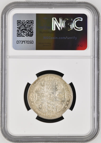 Victoria, 'Godless' Florin, 1849 WW, London, by William Wyon (ESC 2815; S.3890), in NGC holder, conservatively graded NGC MS64 (Cert. #6767905-001)